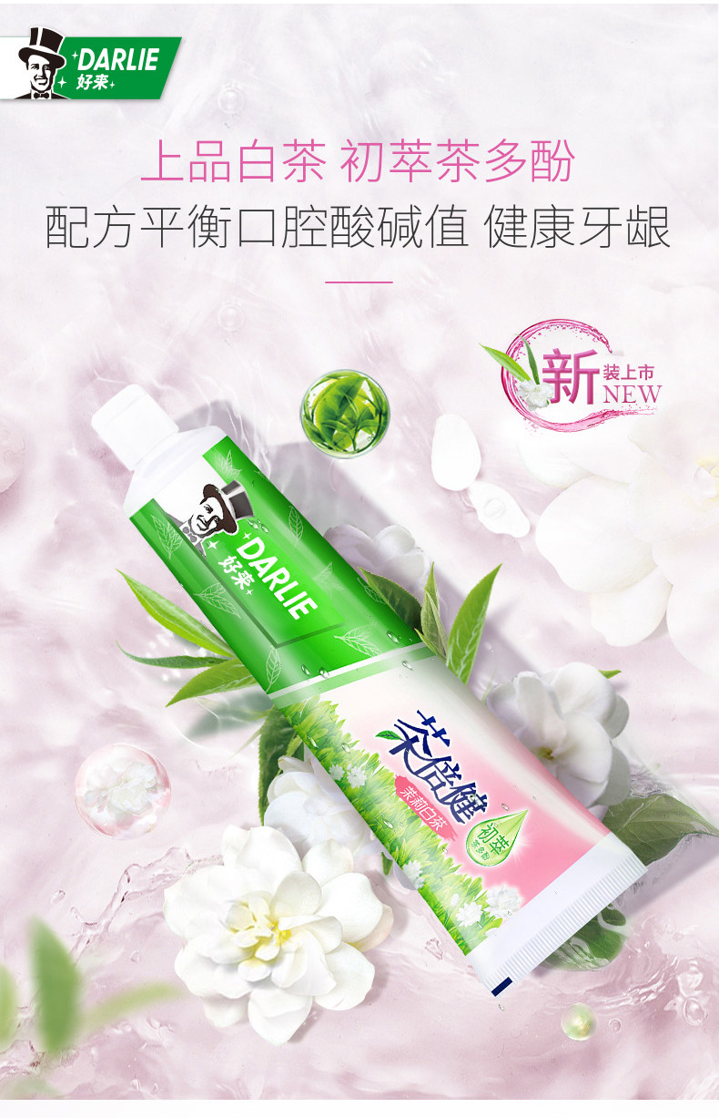 DARLIE好来(原黑人)牙膏茶倍健茉莉白茶140g护龈去除牙菌斑亮白