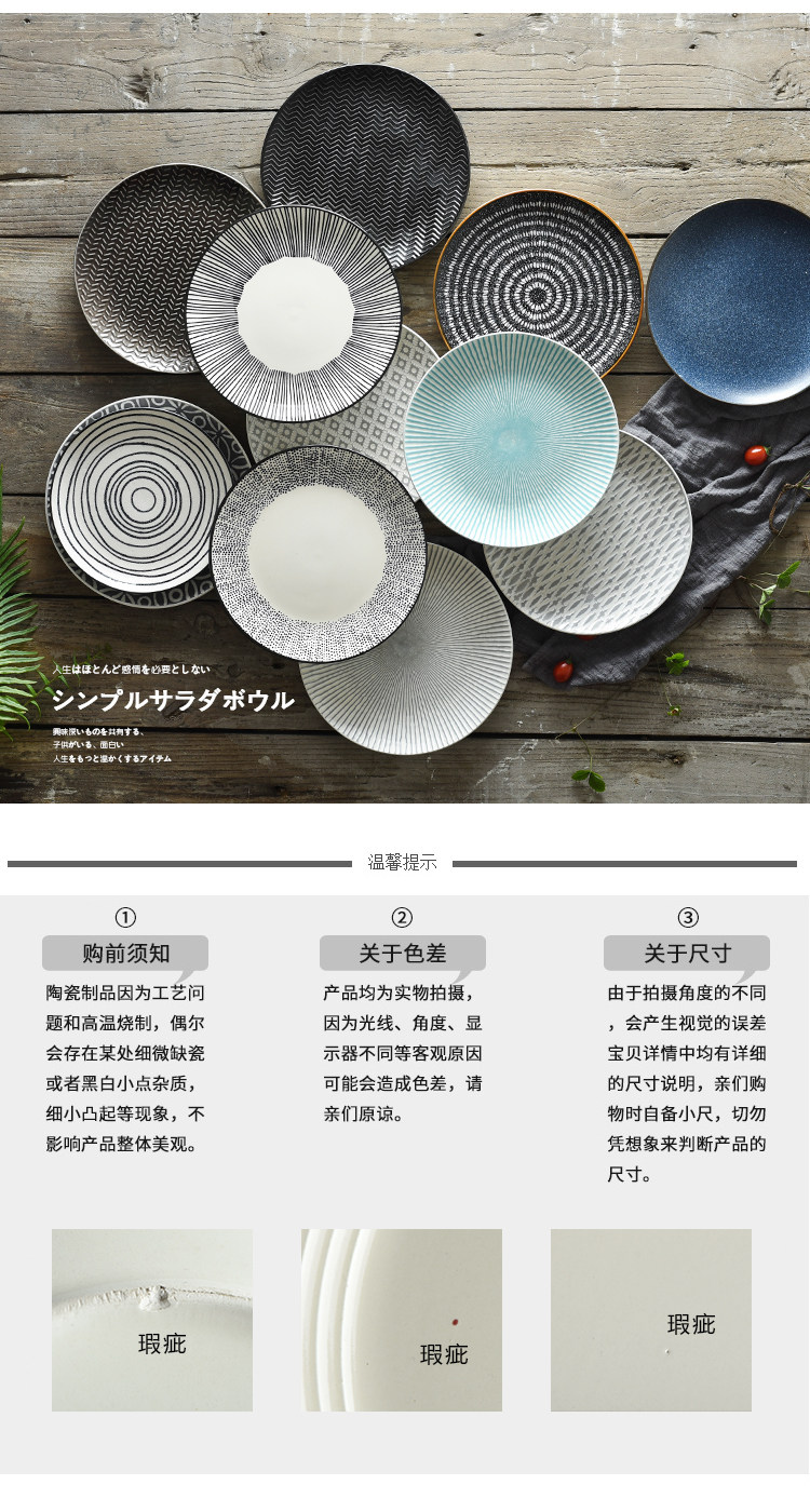 商品名称:艺家8寸个性日式餐具西餐盘创意陶瓷盘子家用菜盘圆形牛排盘餐盘