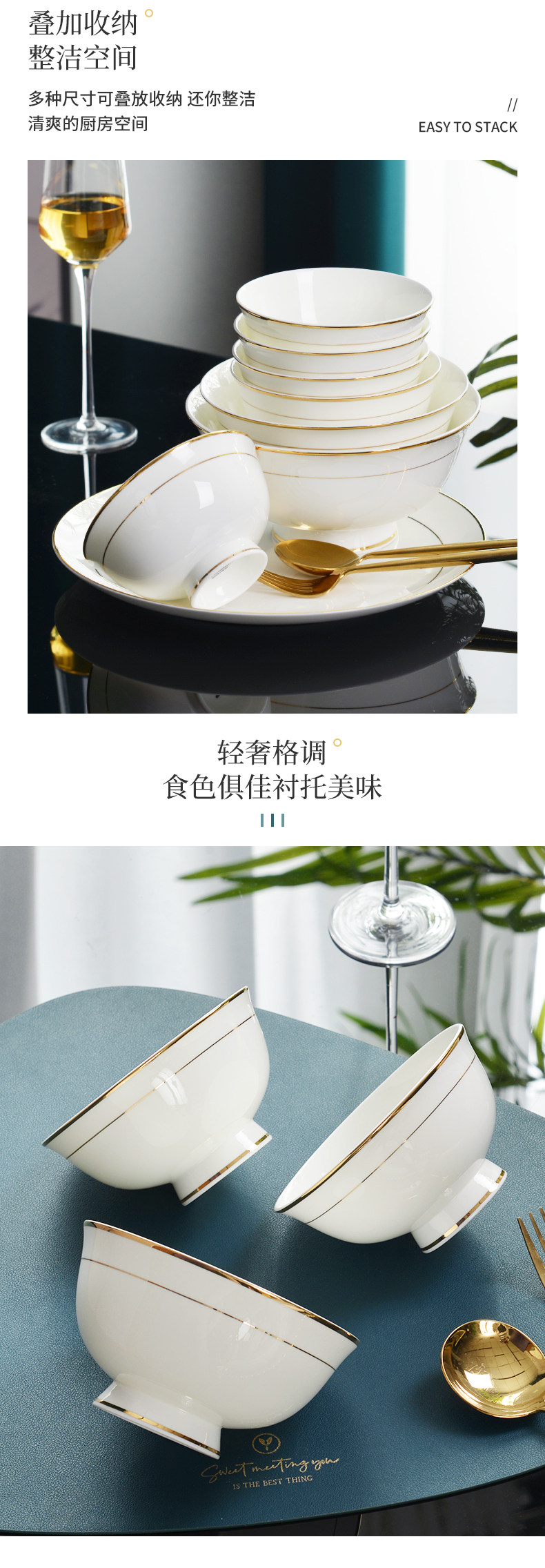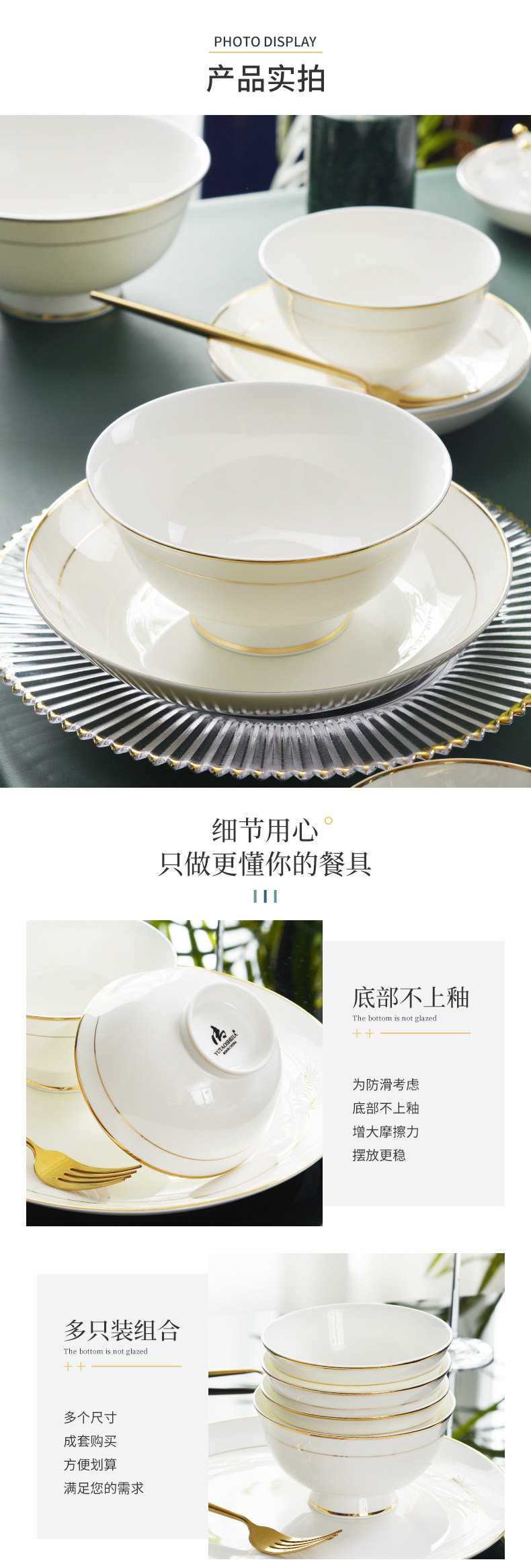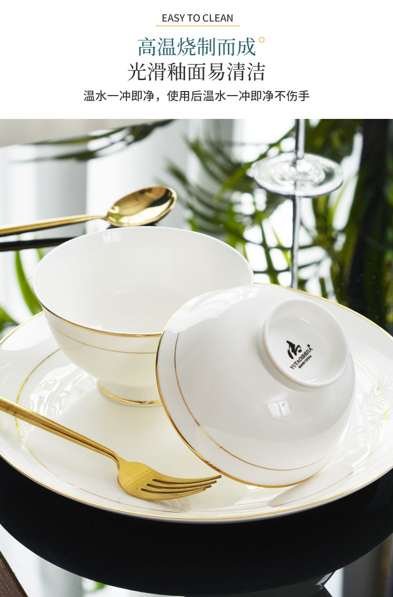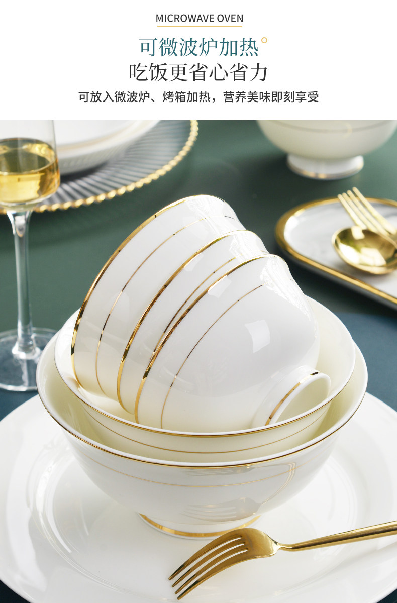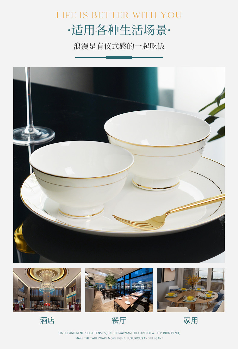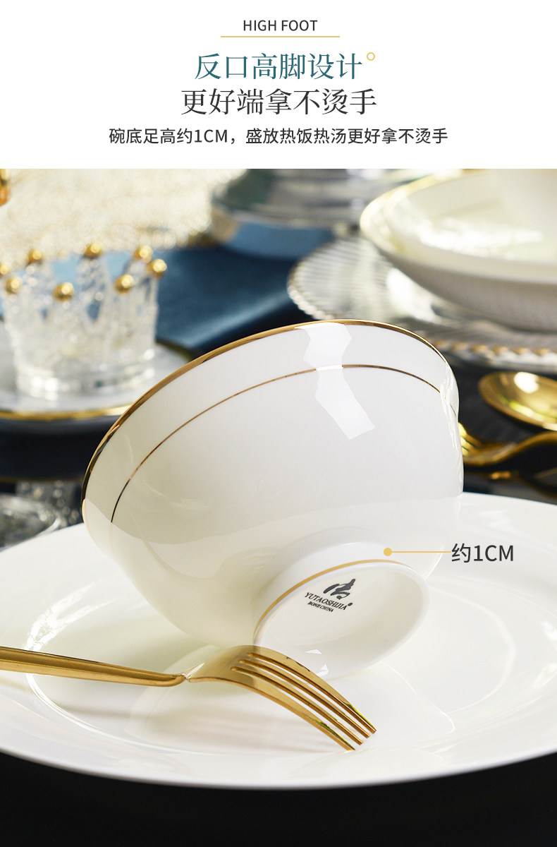 碗10个装 餐具金边骨瓷...