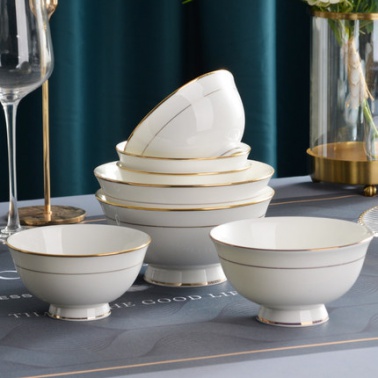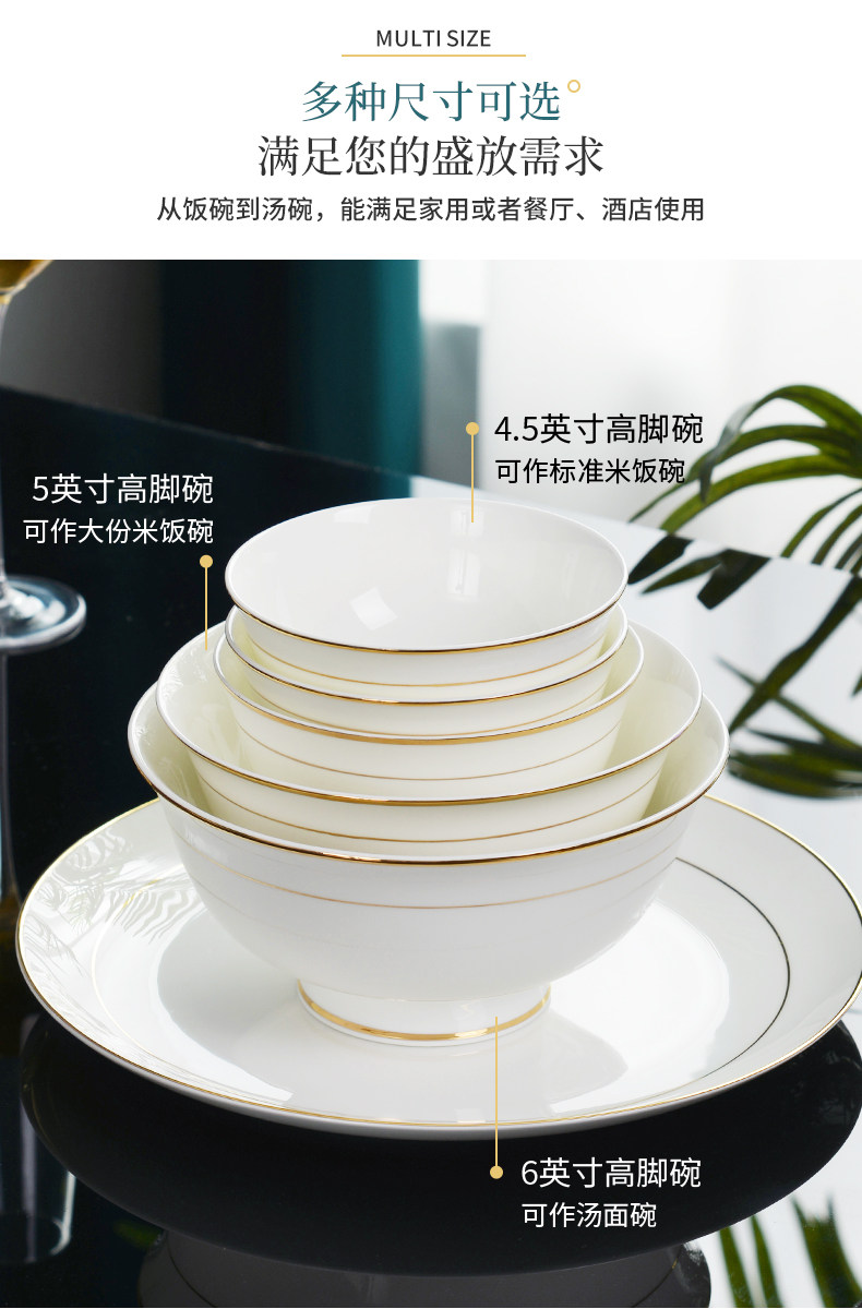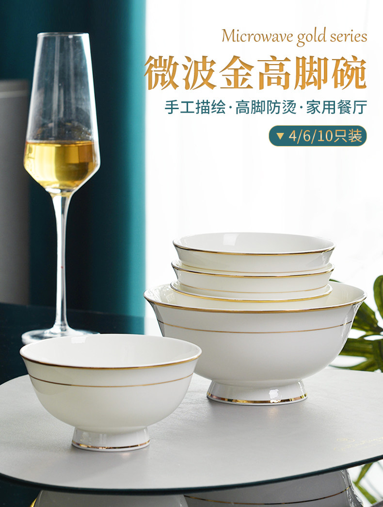 商品名称:碗10个装 餐具金边骨瓷碗高脚碗4.5英寸米饭碗家用6英寸面碗汤碗
