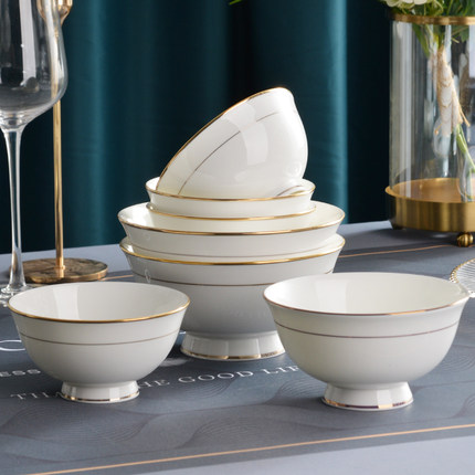 碗10个装 餐具金边骨瓷碗高脚碗4.5英寸米饭碗家用6英寸面碗汤碗
