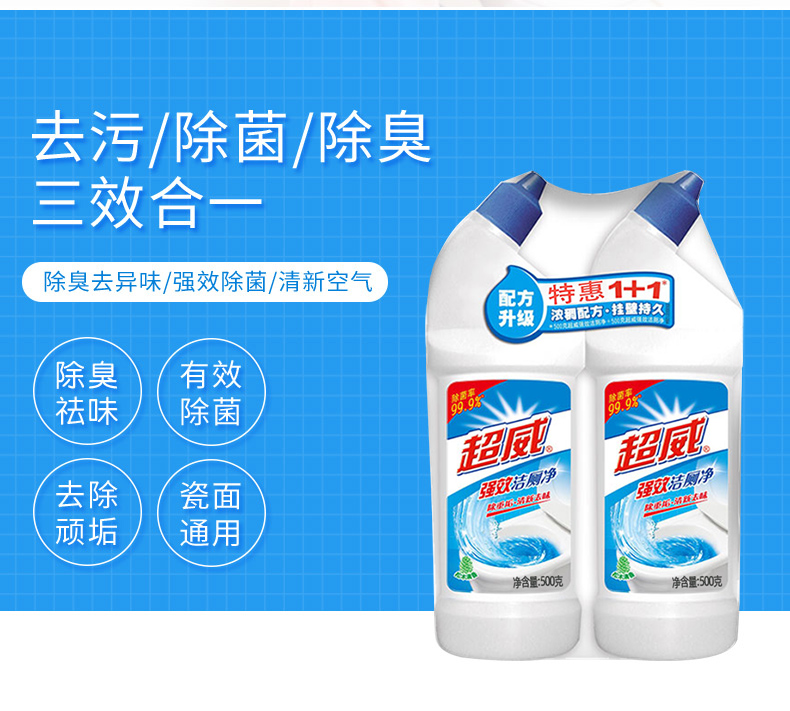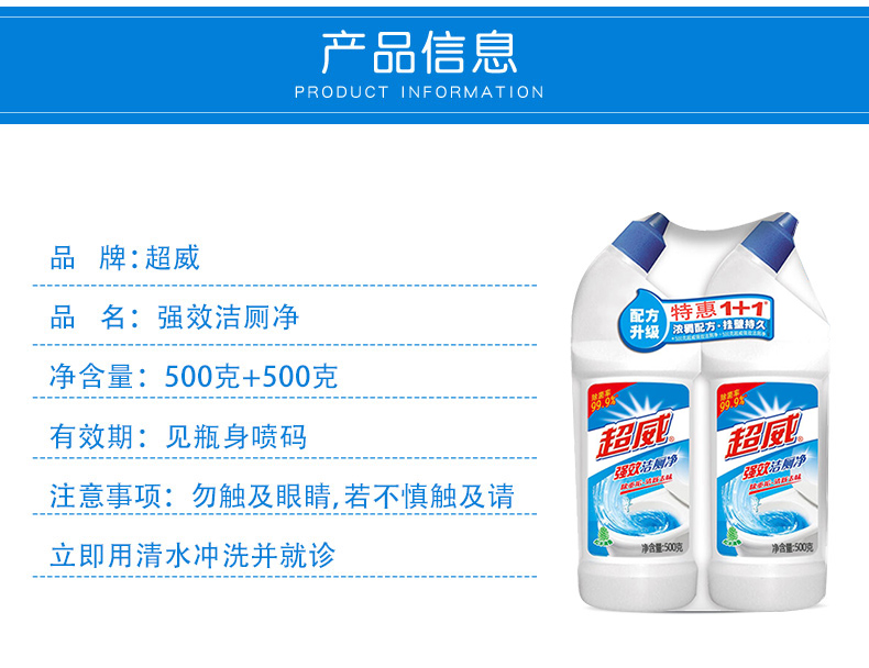 商品名称:超威强效洁厕净洁厕剂净强力除垢液洁厕灵卫生间家用清洁精500g*2